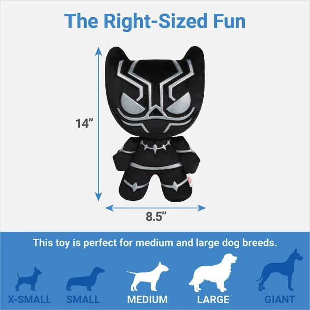- Marvel’s Black Panther plush toy is the perfect friend for all your dog’s playtime adventures.