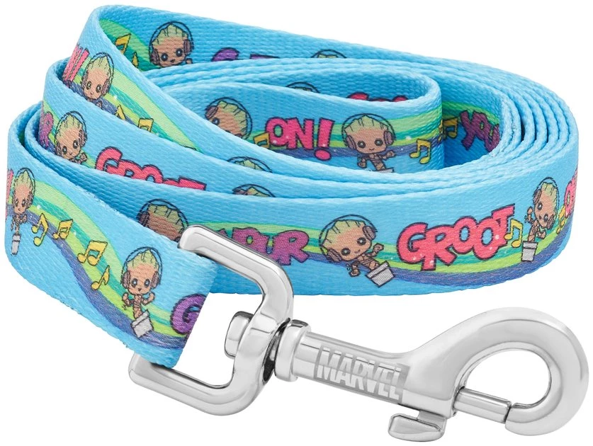 - Epic dancing Groot pattern adds some super Marvel style to your pup’s walks.