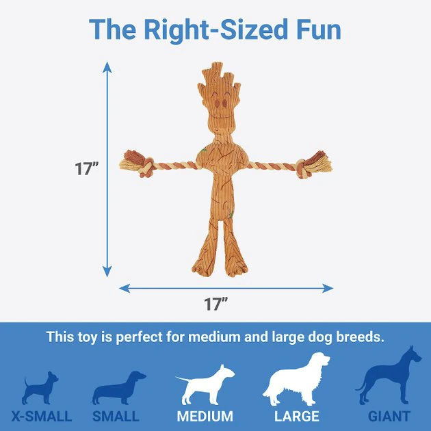Heroic pups of all barks of life will love this plush modeled after a true Marvel Universe favorite, Groot from Marvel’s Guardians of the Galaxy. This plush toy, available only at Chewy, combines two pup favorites into one super-fun, superfan-approved toy. It has a plush, squeaky body that your pup can cuddle up to and a poly/cotton rope attached through the body for arms. Squeak it, toss it, catch it, fetch it—however your pup likes to play, this Groot toy is always game for a good time!