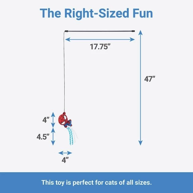 Be your kitty’s hero! The Spider-Man teaser cat toy, available only at Chewy, puts you in control of your cat’s play and makes for a Marvel fan’s new fave, for sure. With a flick of your wrist, you can send your kitty on a mission of interactive fun fit for the most playful kitties in the whole universe. Watch them stalk, chase and pounce on the Spider-Man toy—with soft stuffing, catnip inside and curly strings attached for extra kitty excitement—while you exercise your little hunter’s instincts to prey and play.