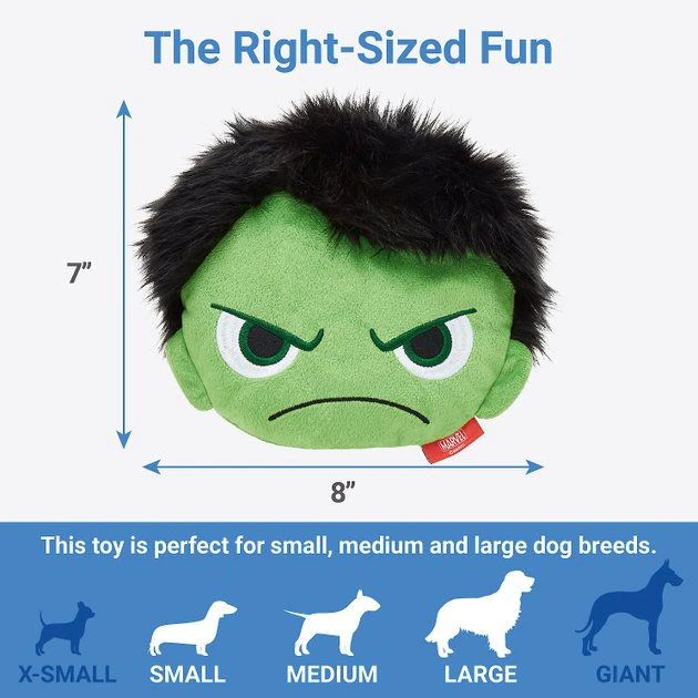 Make a furry Marvel fan’s day with the round Hulk plush! This round plush toy, available only at Chewy, has a soft cover for cuddling, fluffy stuffing and a squeaker inside to keep your furry sidekick engaged in all the fun and games. Whether it’s time for interactive play like fetch or catch, or your pup just needs a good ol’ hulking cuddle buddy, your pup’s favorite Marvel hero is up to the task!