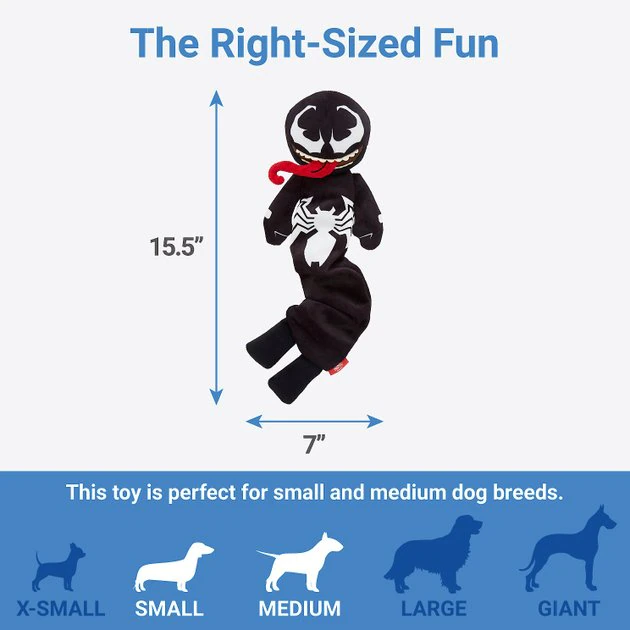 Just like Marvel’s Venom, this toy is always ready to spring into action when the day calls for fun! This toy, available only at Chewy, has a soft cover dogs will love to cuddle up with, crinkle paper inside for an exciting texture and even a squeaker too. But this version of Venom puts a twist on a traditional plush with a bungee in the center that makes sure he keeps bouncing back for more pup fun, no matter how they play. Stretch him out, fling him far and watch your dog go on a mission to capture their favorite super villain!