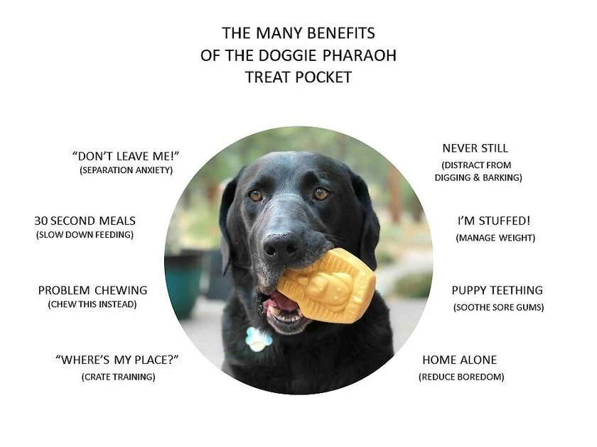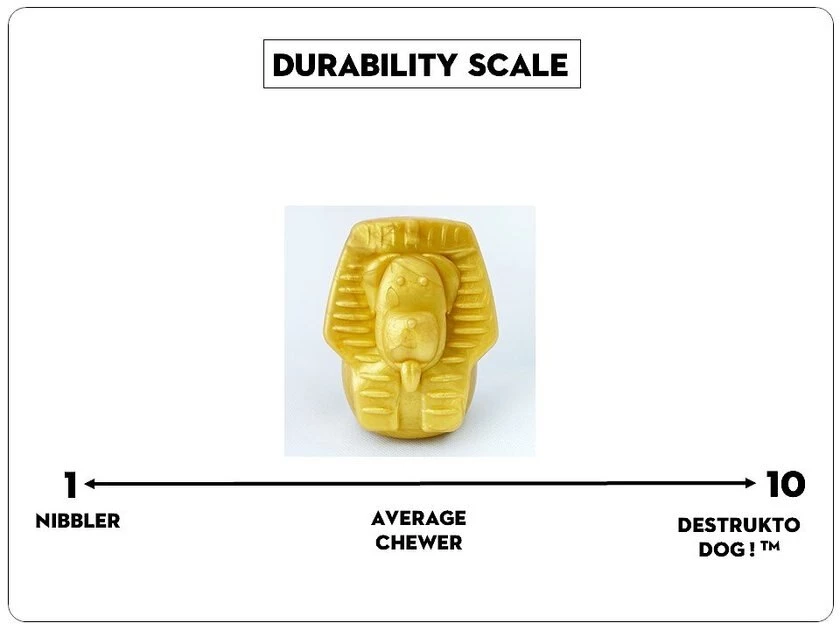 Treat your dog like the royalty he is with the SodaPup Doggie Pharaoh Treat Dispenser Dog Toy. This versatile chew toy is designed to withstand even the most powerful chewers, and it also dispenses treats to add to all the fun. Fill it with kibble and use it as a slow feeder or put tasty snacks inside—the toothed opening makes it deliciously challenging to get to what’s inside. This synthetic rubber toy is USA-made, FDA-compliant, biodegradable, and non-toxic, so it’s good for you, for your dog—and for the planet!