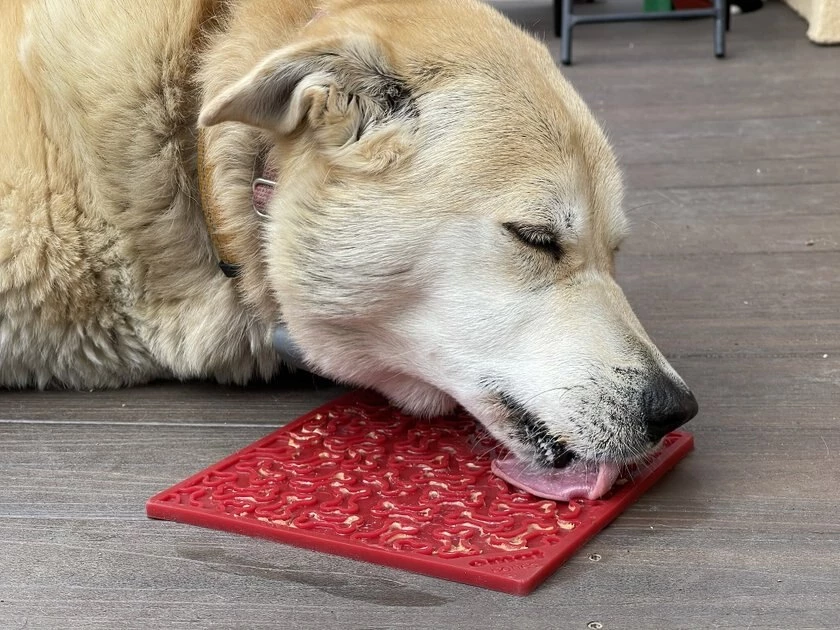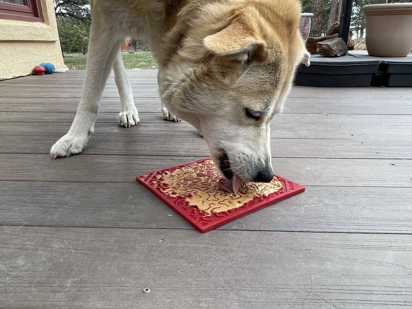 - Spread your pup’s favorite soft treat across the surface of the mat to provide a soothing and satisfying diversion.
