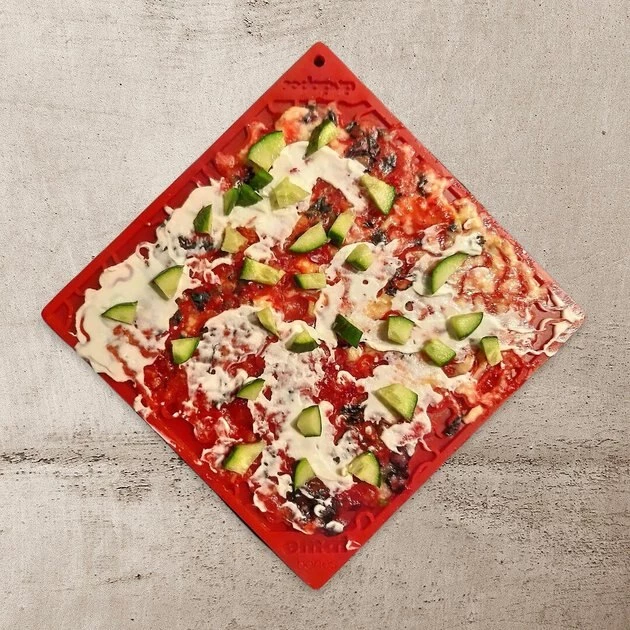 - Try filling the mat with peanut butter, canned food, cream cheese, plain yogurt, or spreadable goodies made for dogs.