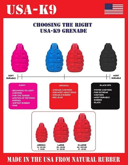 Give your dog a toy that will fuel hours of explosive play with the SodaPup Grenade Reward Treat Dispenser Dog Toy. This durable chew toy and treat dispenser provides a great way to entertain your pup, and its’ fun grenade shape makes it easy to pick out of the toy box. Fill it with kibble and use it as a slow feeder or put tasty snacks inside—your dog will love the exciting process of working to get his reward. This natural rubber toy is USA-made, FDA-compliant, biodegradable, and non-toxic so it’s good for you, your dog—and the planet, too!