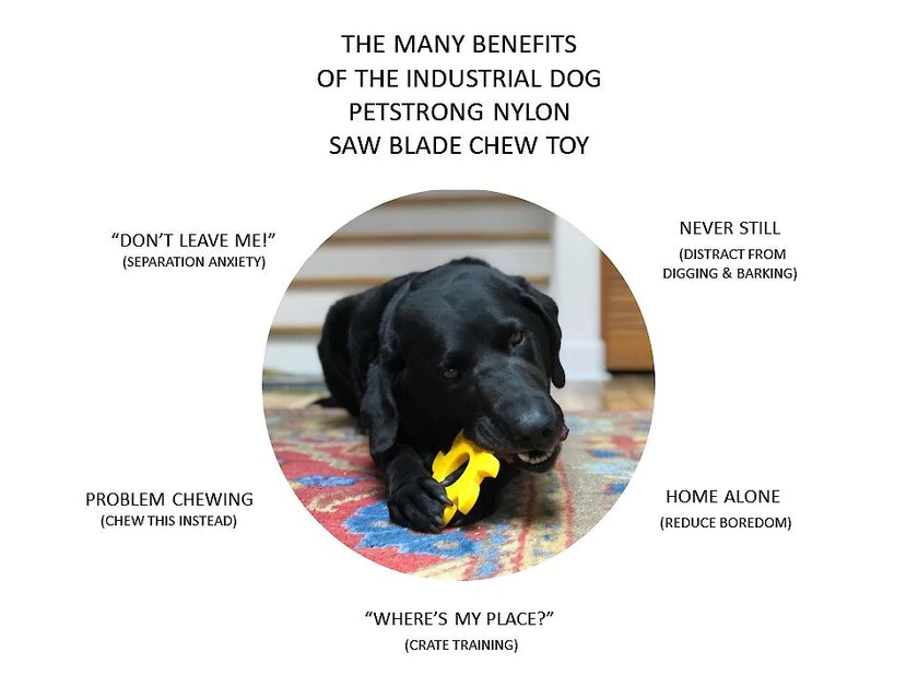 Make a home improvement your dog will appreciate with the SodaPup Nylon Circular Saw Chew Dog Toy. This ‘edgy’ toy looks like a circular saw blade, and its durable construction means it can stand up to even the most vigorous chewers. It’s a great way to keep your dog entertained, reduce problem chewing and relieve stress—plus it helps clean teeth and freshen breath, too. FDA-compliant and made in the USA from non-toxic materials, it’s a cutting edge choice both you and your dog can love!