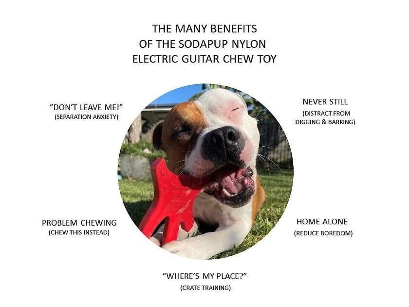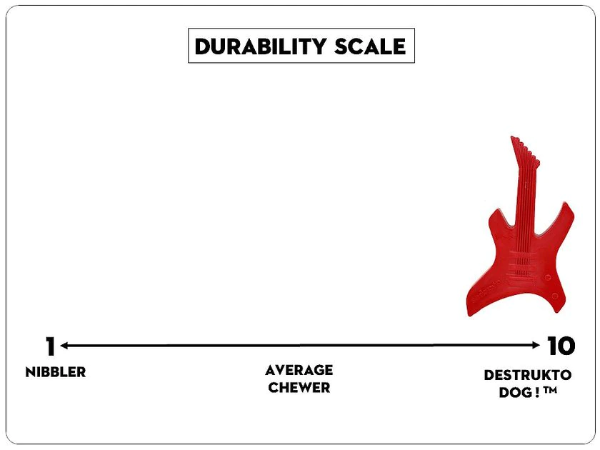 It’s time to rock and roll-over! The SodaPup Nylon Electric Guitar Chew Dog Toy brings some electrifying energy to your dog’s playtime. Toss this guitar-shaped chew and watch your dog have tons of fun! This toy is designed to be durable, which helps it stand up to plenty of play. By keeping your pooch occupied with different shapes and textures, this toy helps ease separation anxiety and persistent chewing. It even freshens up your canine companion’s breath!