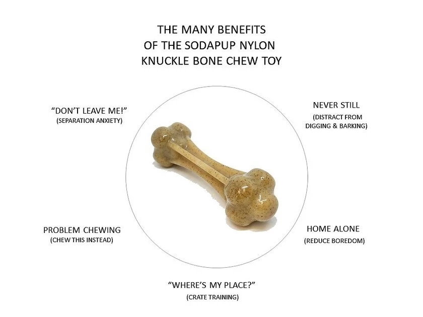 The SodaPup Nylon Knuckle Bone Chewy Dog Toy is the paw-fect accessory for your pup’s playtime—when you’re working, out running errands, or staying busy around the house. Toss this bone chew and watch your dog have tons of fun! This toy is designed to be durable, which helps it stand up to plenty of play. By keeping your pooch occupied with different shapes and textures, this toy helps ease separation anxiety and persistent chewing. It even freshens up your canine companion’s breath!