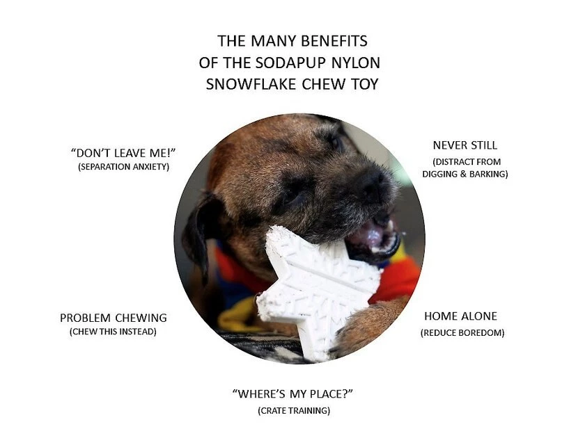 Oh the weather outside is frightful, but playtime is so delightful, with the SodaPup Nylon Snowflake Chew & Enrichment Dog Toy! Toss this snowflake-shaped chew and watch your dog have tons of fun! This toy is designed to be durable, which helps it stand up to plenty of play. By keeping your pooch occupied with different shapes and textures, this toy helps ease separation anxiety and persistent chewing. It even freshens up your canine companion’s breath! Smear peanut butter in the indentations to keep your dog busy.