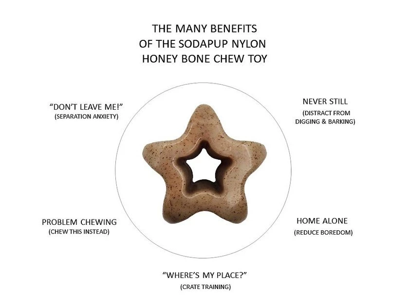 With the SodaPup Nylon Star Chew & Enrichment Dog Toy, the future of your furry friend’s playtime looks bright! Toss this star-shaped chew and watch your dog have tons of fun! This toy is designed to be durable, which helps it stand up to plenty of play. By keeping your pooch occupied with different shapes and textures, this toy helps ease separation anxiety and persistent chewing. Pet parents rejoice—it even freshens up your canine companion’s breath! Hide peanut butter or treats on the inside for more fun!