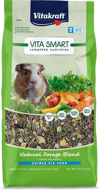- Vitakraft VitaSmart Guinea Pig Food, 8-lb bag—Promotes your guinea pig’s natural foraging behavior.