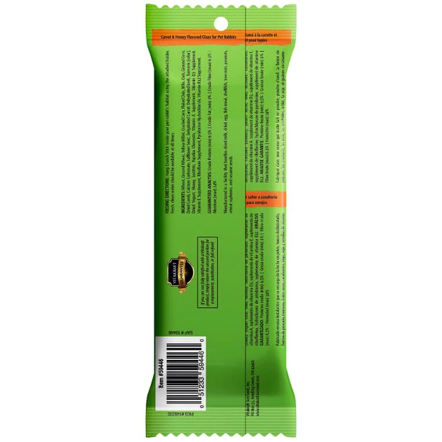 Your rambunctious rabbit deserves some delicious fun! Give him Vitakraft Crunch Sticks Carrot & Honey Rabbit Treats. These premium bunny treats double as chew toys and are both tasty and entertaining. Each treat is triple-baked on an all-natural wooden stick, providing your fluffball with hours of chewing fun that supports his dental health and helps wear down his ever-growing teeth. These rabbit snacks encourage him to follow his natural instinct and forage for his food—making your fur-iend feel like he’s in his natural habitat. Plus, they are made with added vitamins and minerals, so they’re a great supplement to his regular rabbit food.