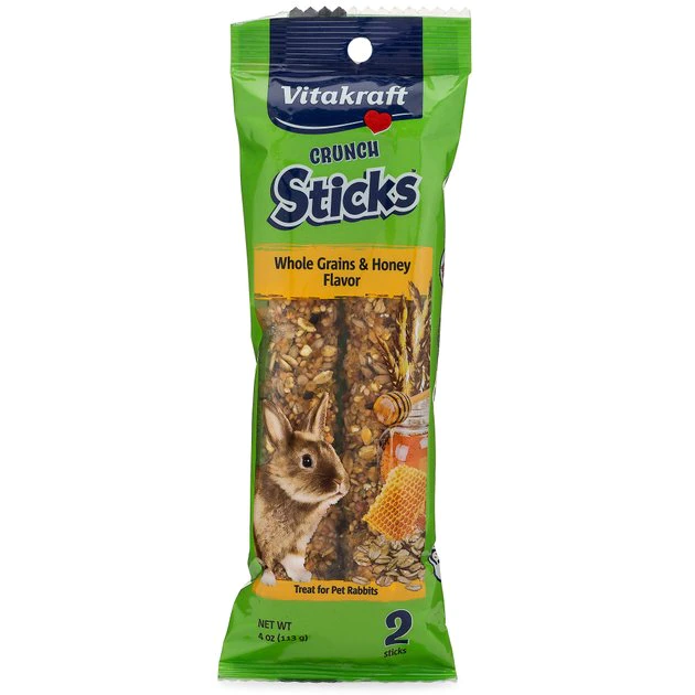 For a snack that’s delicious and fun, try Vitakraft Crunch Sticks Whole Grains & Honey Flavor Rabbit Treat! Each treat is triple baked on an all-natural wooden stick, offering hours of gnaw-some fun that’s also good for your pal’s ever-growing teeth. These rabbit snacks simulate the instinctive urge to forage for food, helping your fuzzy friend feel like they’re in their natural habitat. With added vitamins and minerals, Vitakraft Crunch Sticks are a great supplement to your rabbit’s regular diet.