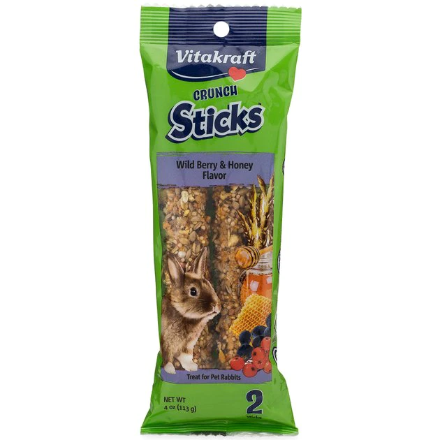 For a snack that’s delicious and fun, try Vitakraft Crunch Sticks Wild Berry & Honey Rabbit Treat! Each treat is triple baked on an all-natural wooden stick, offering hours of gnaw-some fun that’s also good for your pal’s ever-growing teeth. These rabbit snacks simulate the instinctive urge to forage for food, helping your fuzzy friend feel like they’re in their natural habitat. With added vitamins and minerals, Vitakraft Crunch Sticks are a great supplement to your rabbit’s regular diet.