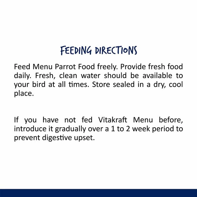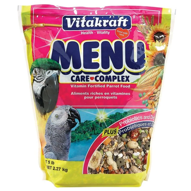 Get your feathered friend’s wings flapping with Vitakraft Menu Premium Vitamin-Fortified Parrot Macaw, Conure & Large Bird Food! This scrumptious seed mix features a wholesome blend of seeds, grain, fruits and vegetables that’s perfect for your large pet bird. The specialized formula offers complete nutrition thanks to a biodiverse mix of sunflower, rolled peas, whole peanuts, carob pods, alfalfa rings, bananas, raisins and chili peppers. It also includes DHA omega-3s to support brain, heart, vision and immune health, while natural probiotics aid in healthy digestion. Great for amazons, sun conures, macaws and parrots alike, this Vitakraft blend can help keep your bird looking and feeling fabulous!
