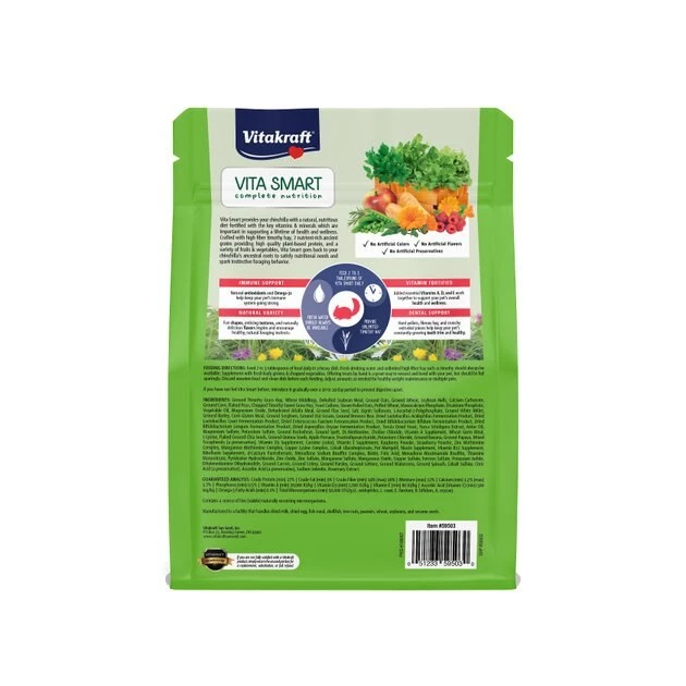 Keep your chinchilla healthy, strong, and happy with Vitakraft Vita Smart Vitamin-Fortified Complete Natural Forage Blend Nutrition Timothy Hay Pellets Chinchilla Food! This delicious foraging mix is made with high-fiber timothy hay pellets, plant-based protein packed grains, and tasty vegetables. This adventurous mix is enriched with the vitamins your little friend needs and even stimulates his natural foraging behaviors as he dines. It is the paw-fect foundation for his diet and can support his health when used with a combination of healthy treats, supplements, and plenty of water.